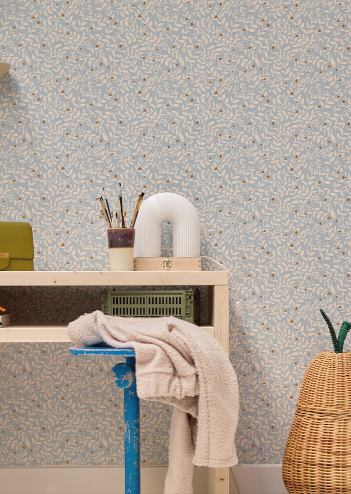 Breng rust en frisheid in huis met Behang Flora ijsblauw. De zachte blauwe tint en subtiele bloemetjes zorgen voor een kalme basis in elke slaapkamer, babykamer of kinderkamer. Dankzij het tijdloze ontwerp combineert dit vliesbehang met bloemen prachtig met de verfkleuren uit onze collectie.