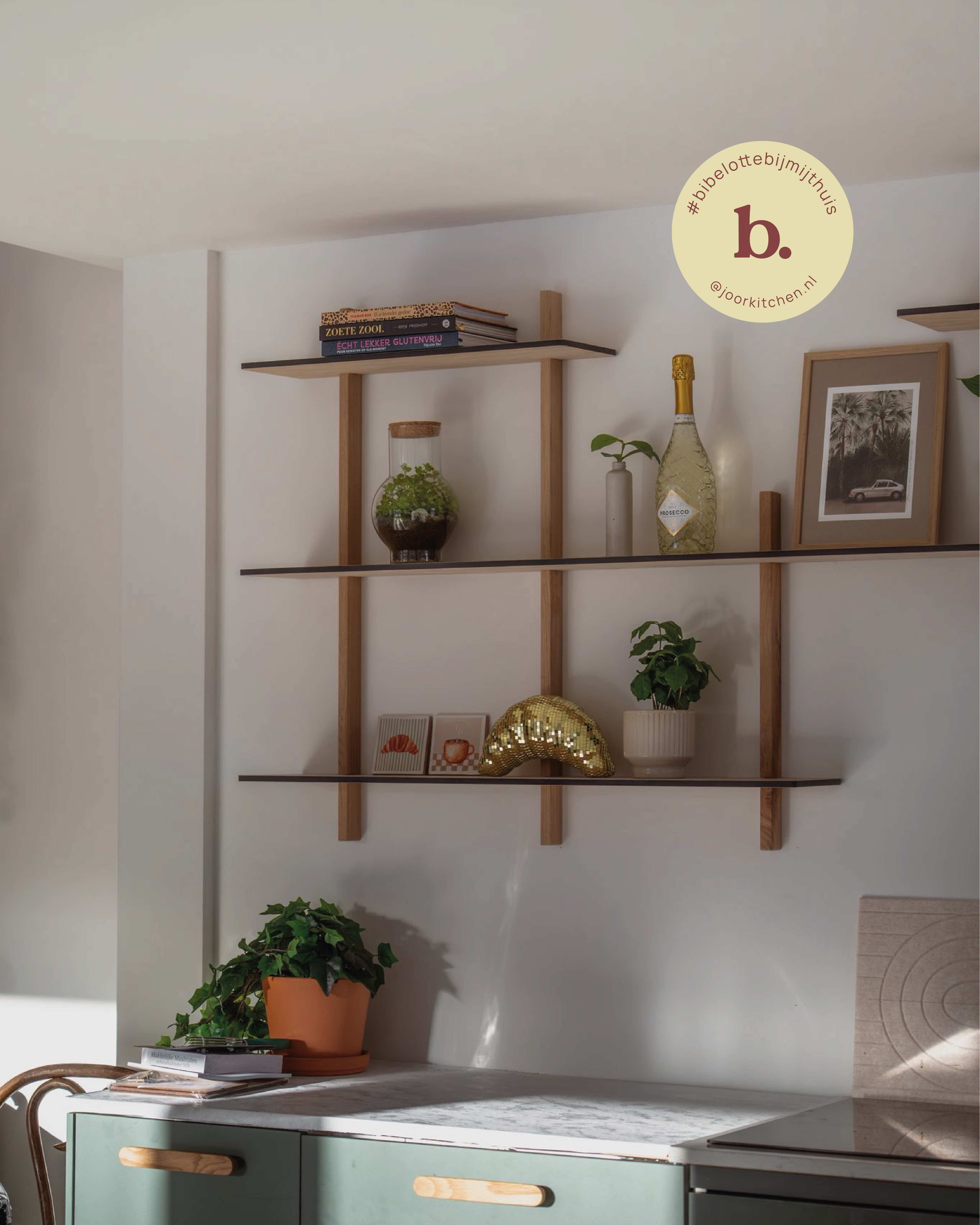 Mocht er toch wat speling zitten, dan hebben we kleine vulstukjes die je tussen de staander en de plank kunt schuiven. Maar meestal is dat niet nodig – die minimale speling heb je vaak juist nodig omdat muren bijna nooit helemaal recht zijn.