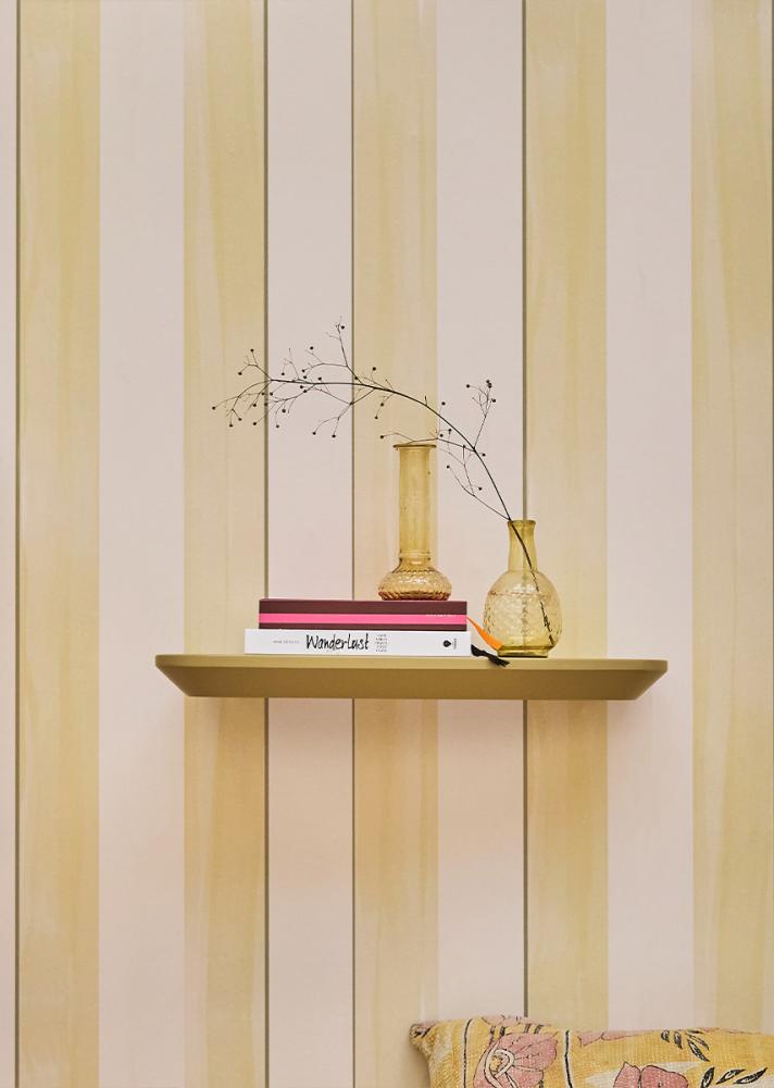 Ga je voor een rustige basis? Kies dan voor behang Lijnenspel Geel of Gestreept biscuit De zachte beige tinten maken deze prints perfect om te combineren met naturel verfkleuren.