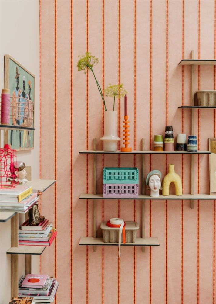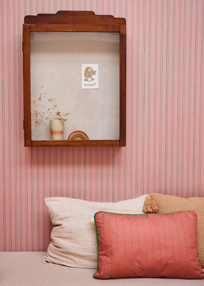 Ook Gestreept framboos en Gestreept zee zijn ook geliefde keuzes. Dankzij de klassieke lijnen en zachte kleuren is dit gestreept behang tijdloos. Het past net zo mooi in de kinderkamer als in de hal, en geeft elke ruimte een rustige, maar speelse uitstraling.